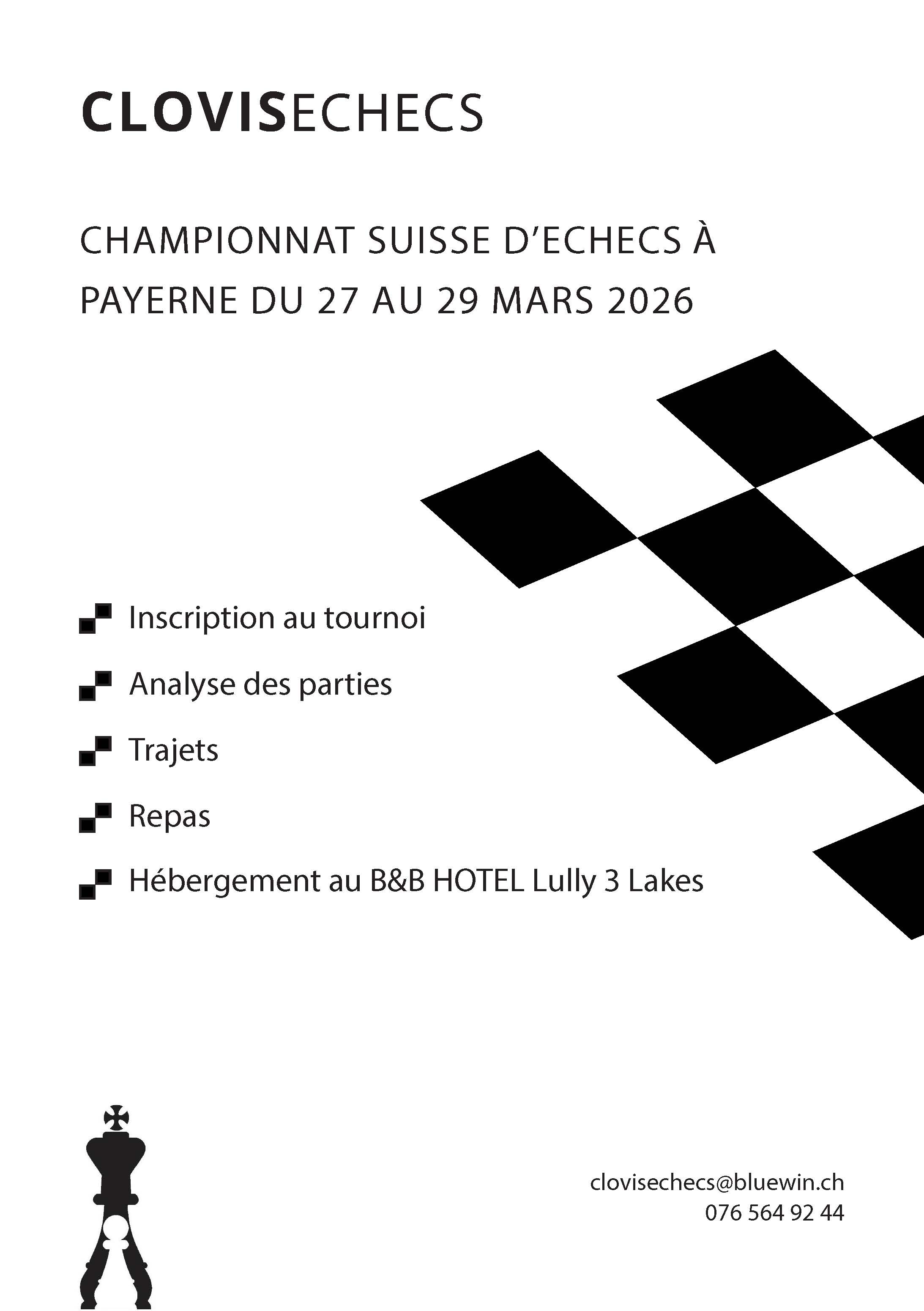 Prochain championnat suisse jeunes d'échecs à Payerne du 27 au 29 mars 2026